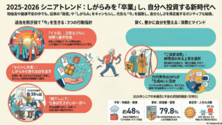 2026年の景況感において、シニア世代が抱く期待と不安には、「マクロ経済への強い悲観」と「個人の充実に対する前向きな意志」が共存しているという、極めて対照的な特徴が見られます。出典に基づき、その詳細を解説します。1. 景況感における主な「不...